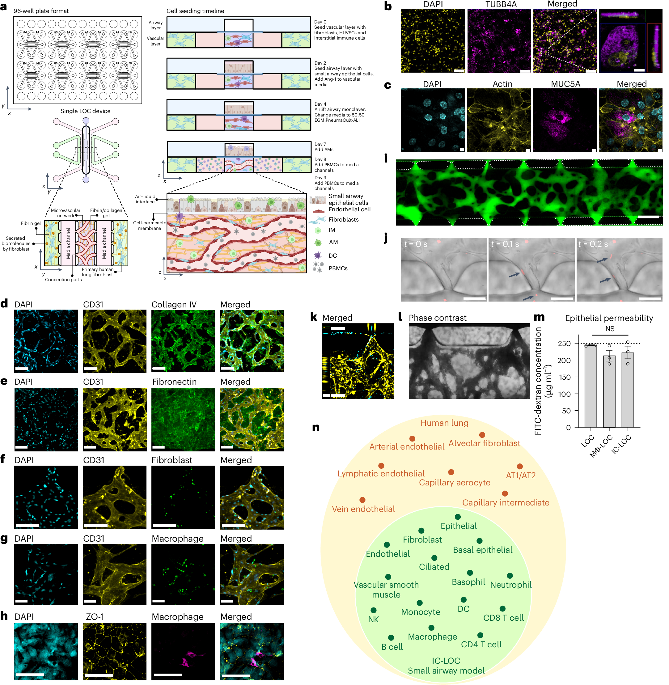 • Canalele microfluidice sunt căptușite cu celule vii (epiteliale, endoteliale etc.), iar inovația majoră este integrarea celulelor imunitare circulante și rezidente, astfel încât sistemul să poată reacționa la agresiuni externe.